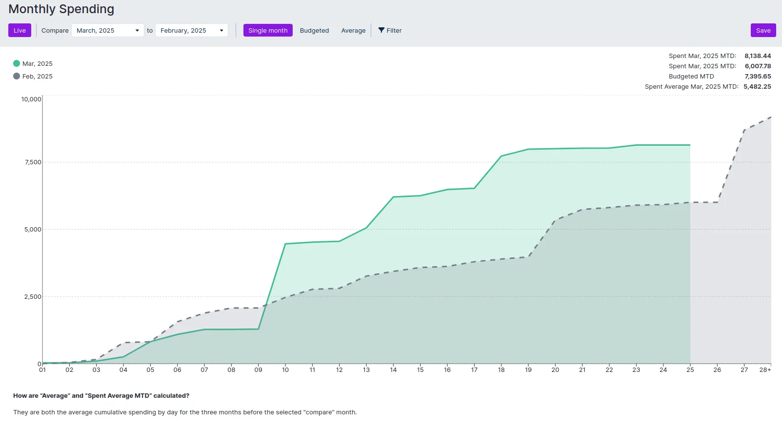 A spending analysis report tracks and compares expenses over a specified period, highlighting trends, fluctuations, and areas of overspending or savings.